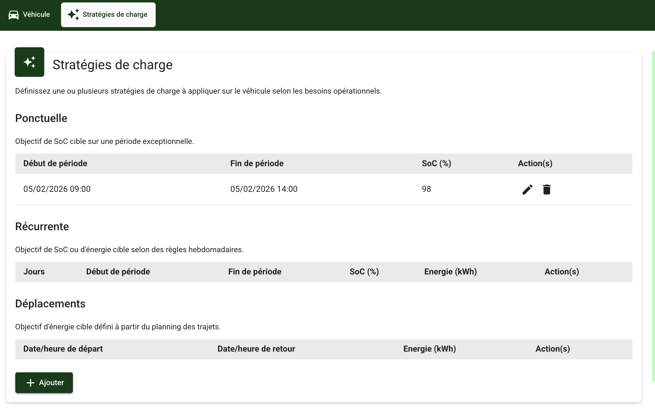 Il est possible de définir un besoin ponctuel en niveau de charge :