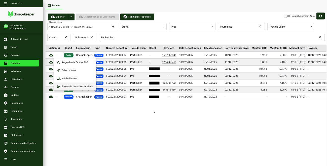La gestion des pièces comptables permet de suivre, corriger et régulariser les factures et avoirs émis depuis la supervision, aussi bien en B2C qu’en B2B.